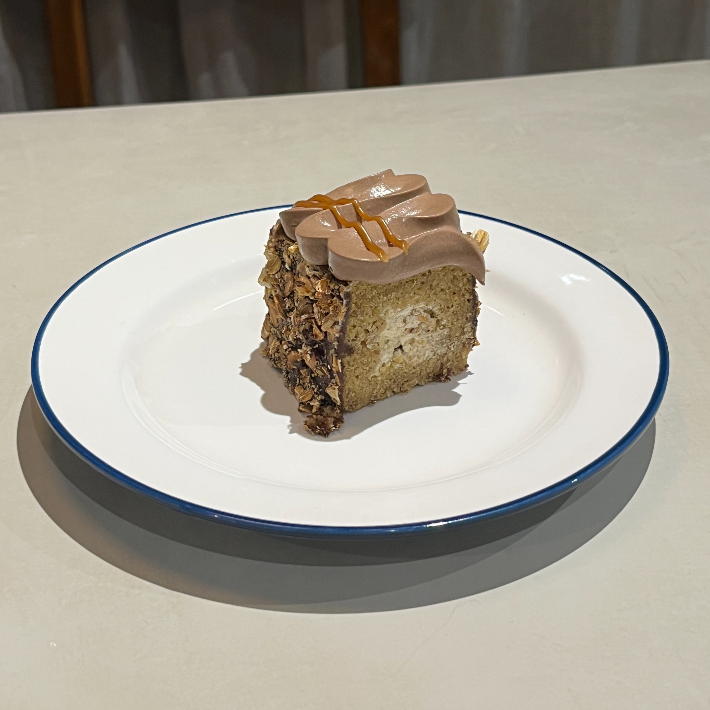 Pisang ambon, gula jawa chantilly, kluwek-cabe jawa mousse, oat