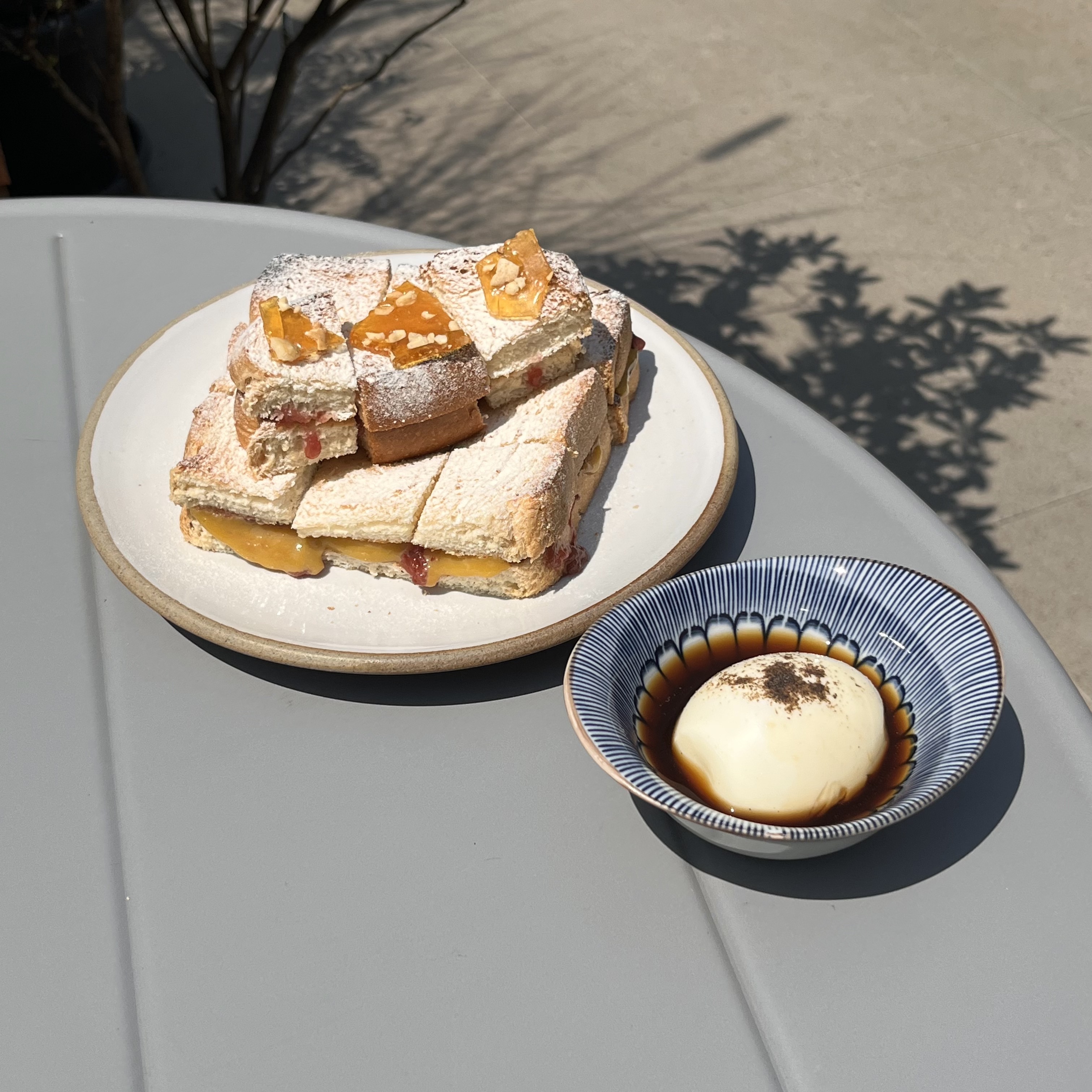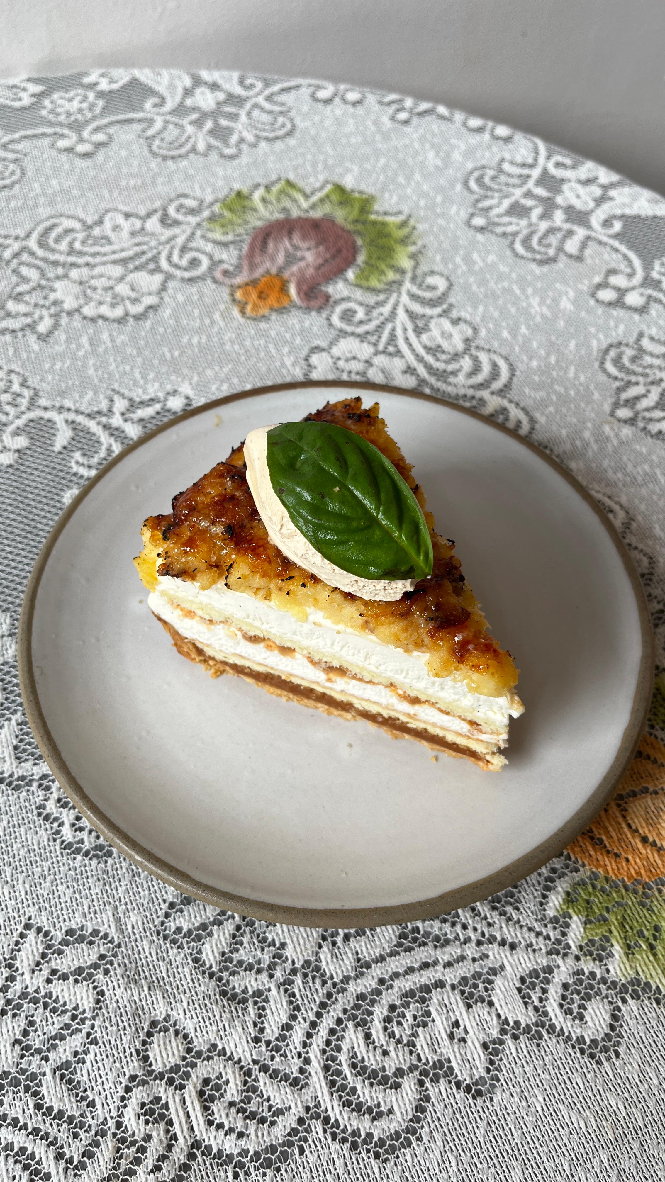 Tart singkong-mete, peuyeum bakar, (colenak), karamel kelapa, gula jawa chantilly