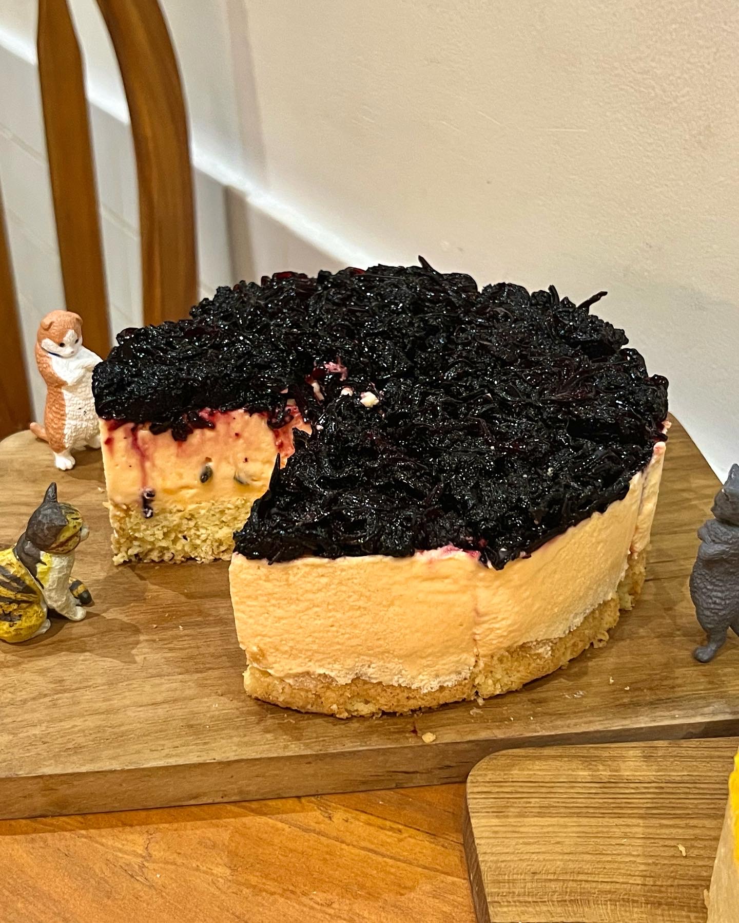 Cake kelapa, mousse markisa, jamur berry compote